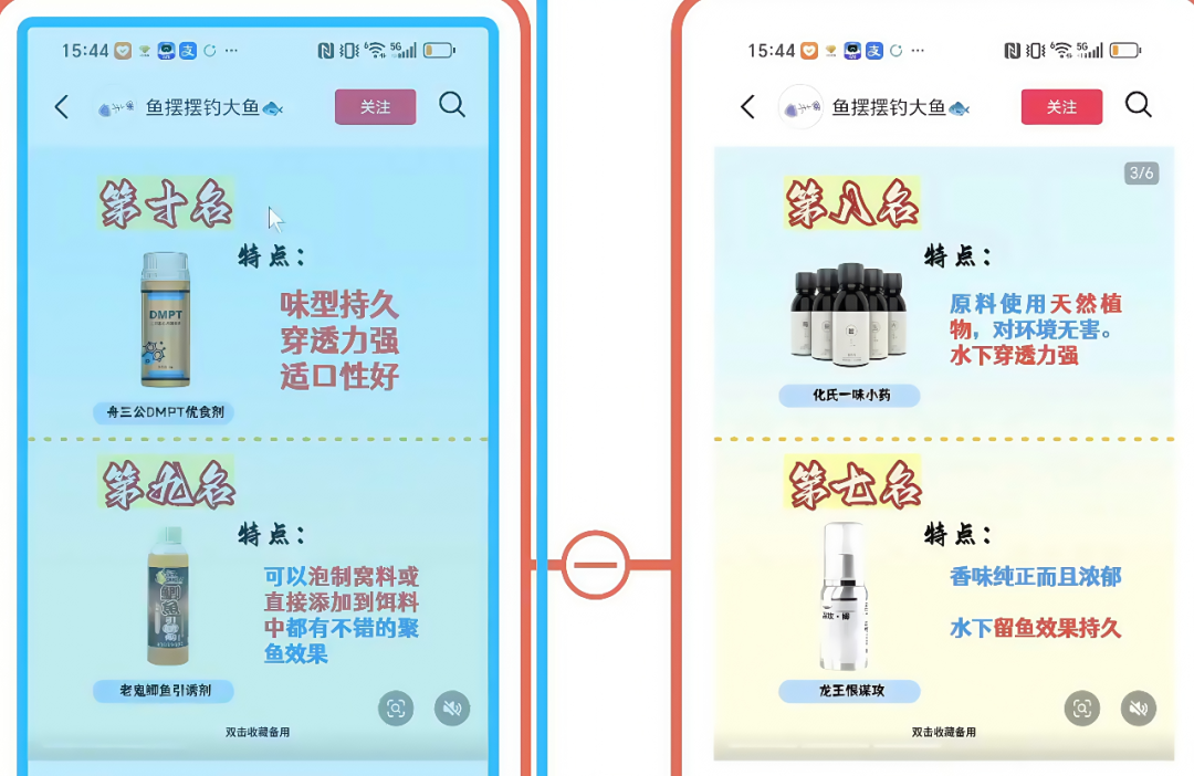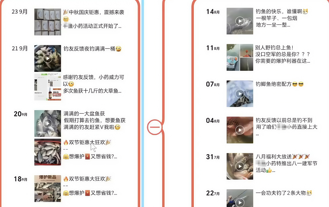 形式很灵活,可以是晒爆护图、做小药排行榜、写钓鱼经验,也可以是分享所谓的“秘方”。