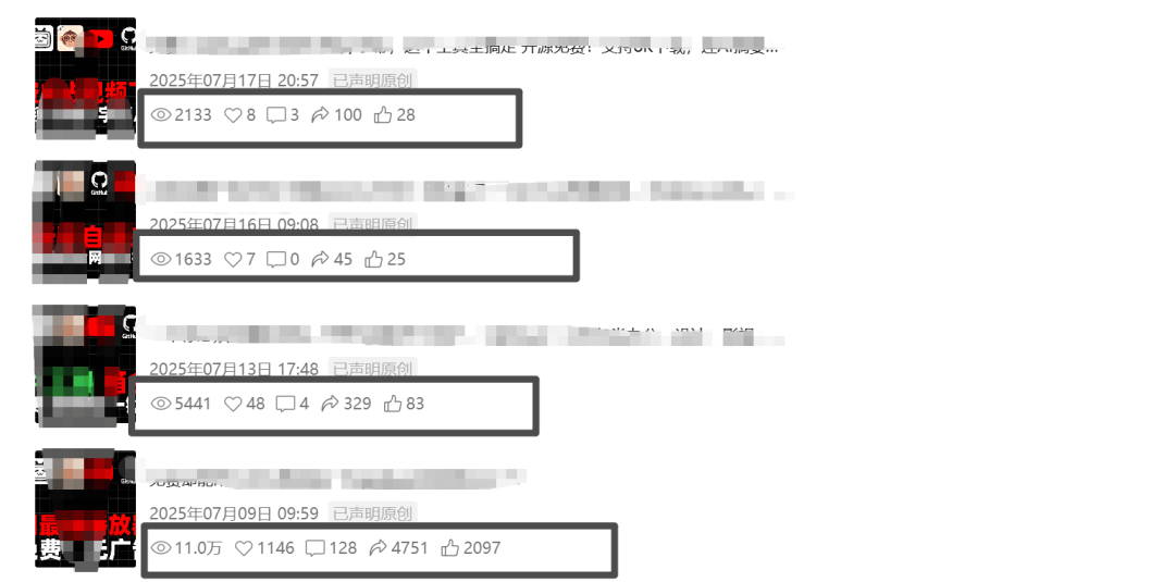 其中CSDN我觉得效果还是不错的,跟平台的调性也相符,刚开始文章内放公众号违规了几次,后面发现直接放飞书链接,反而不违规。