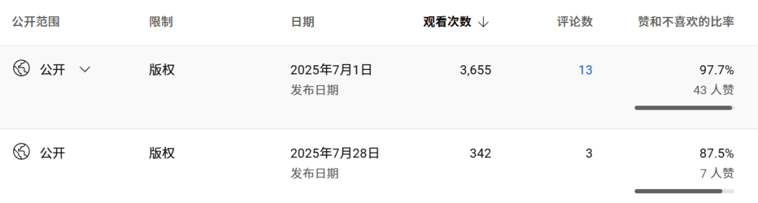 然后就是油管了,看下图即可,一般就几十上百的播放,最高3000+,虽然数据很一般,但至少比国内某些平台好太多了。
