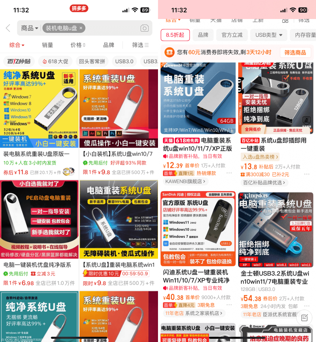 淘宝、拼多多、京东这些平台上,卖系统U盘的商家其实已经很多了。你去搜一下,销量动辄几万、几十万的都有。