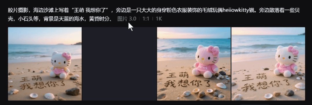 现在有AI工具之后,其实操作已经简单太多了,坐在家里就能生成图、做视频,例如即梦3.0那种图生图工具,生成沙滩写字的视频,然后加点背景音效,比如海浪声、大海风声,再用剪映拼个几秒钟的视频。