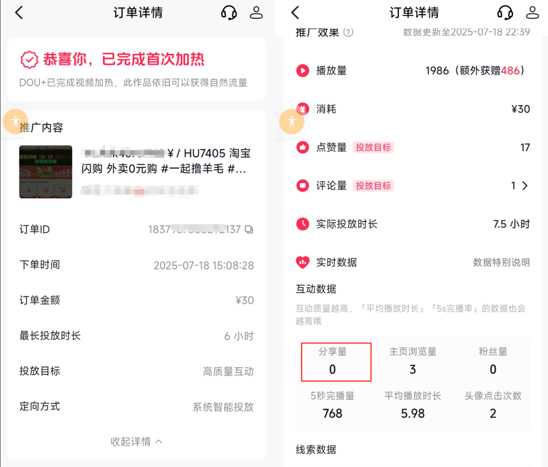 0转发就意味着一分钱也赚不到,甚至还不如我自然流的视频效果好,说实话,我都怀疑这些点赞是系统安排的机器人给我点的。